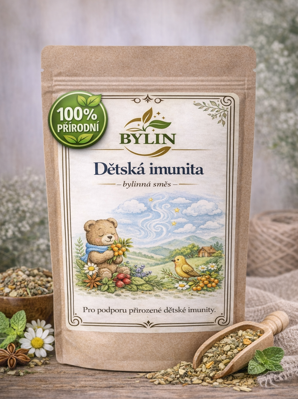 Bývají vaše děti často nachlazené nebo na ně ve školce či škole něco neustále leze? Dětská imunita je jemná bylinná směs, která pomáhá podpořit přirozenou obranyschopnost dětí a dodat tělu potřebnou sílu – šetrně a bez chemie. Co směs dětem přinese: Podporuje přirozenou obranyschopnost Pomáhá v období nachlazení Dodává tělu potřebnou sílu a vitalitu Vhodná pro každodenní prevenci Ideální pro děti které: bývají často nemocné chodí do školky nebo školy potřebují posílit imunitu chcete chránit přirozenou cestou Jemné 100% přírodní složení vhodné pro děti. Nejoblíbenější varianta pro pravidelné užívání – výhodnější balení 145g Dopřejte dětem sílu přírody a klidnější období bez neustálého nachlazení.