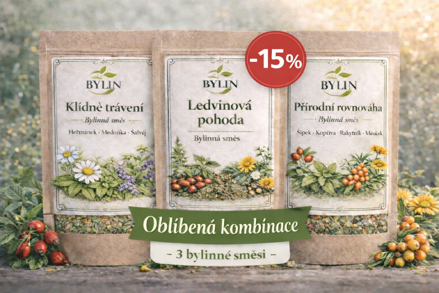 🌿 Zvýhodněné balíčky bylinných směsí pro konkrétní potřeby – ideální jako první objednávka nebo dárek.