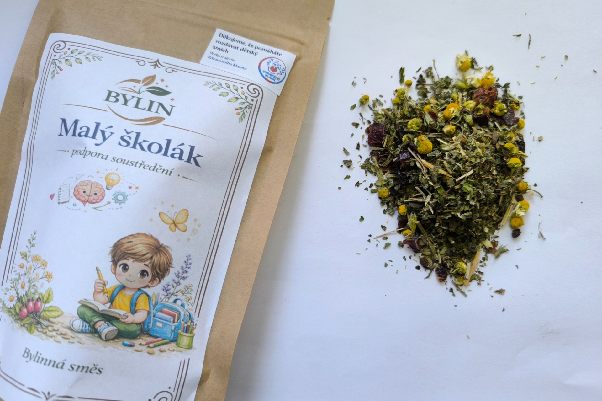 Jemná bylinná směs pro podporu soustředění a vitality u dětí. 🌿📚